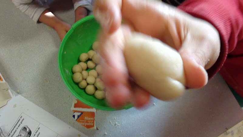 we created 'marsepein' and we baked some 'zandkoekjes'.